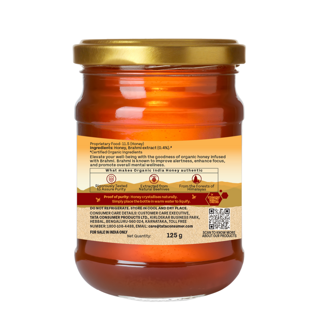 Organic India's Brahmi Honey brings you the sweetness of organic multi-floral honey with goodness of Brahmi herb. Brahmi is known to improve alertness, enhance focus, and promote mental wellness. Ensuring a spoonful of daily dose of health.