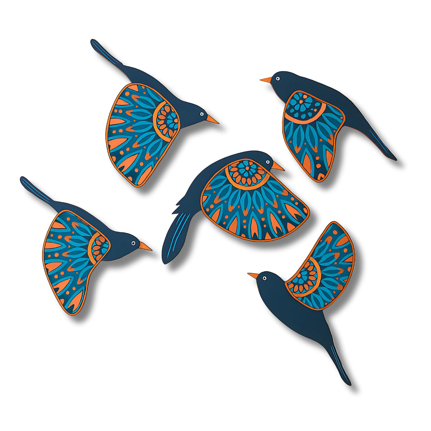 - Each bird is carefully cut and finished from high-quality wood, ensuring durability and a smooth texture. The folk-art-inspired design brings warmth and personality, making it a perfect blend of rustic charm and modern minimalism.